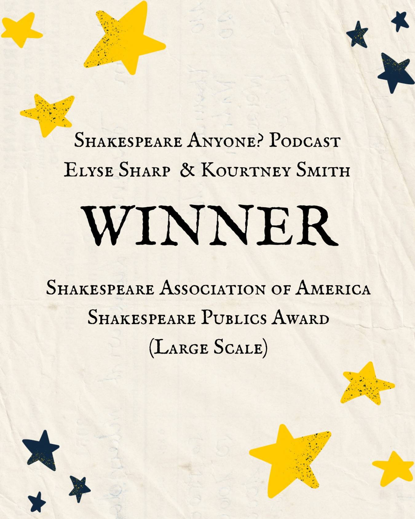 We are two Shakespeare nerds who decided to make a podcast about our love for Shakespeare. In this podcast, we will tackle as many dimensions to Shakespeare’s plays as we can by looking at the text and how the text is viewed through modern lenses of feminism, racism, classism, colonialism, nationalism… all the-isms. We will discuss how his plays shaped both the past and present. And, as actors, we will look at how his work was performed throughout various periods of time. All while trying our best to approach his works without giving in to bardolatry. So...Shakespeare Anyone?